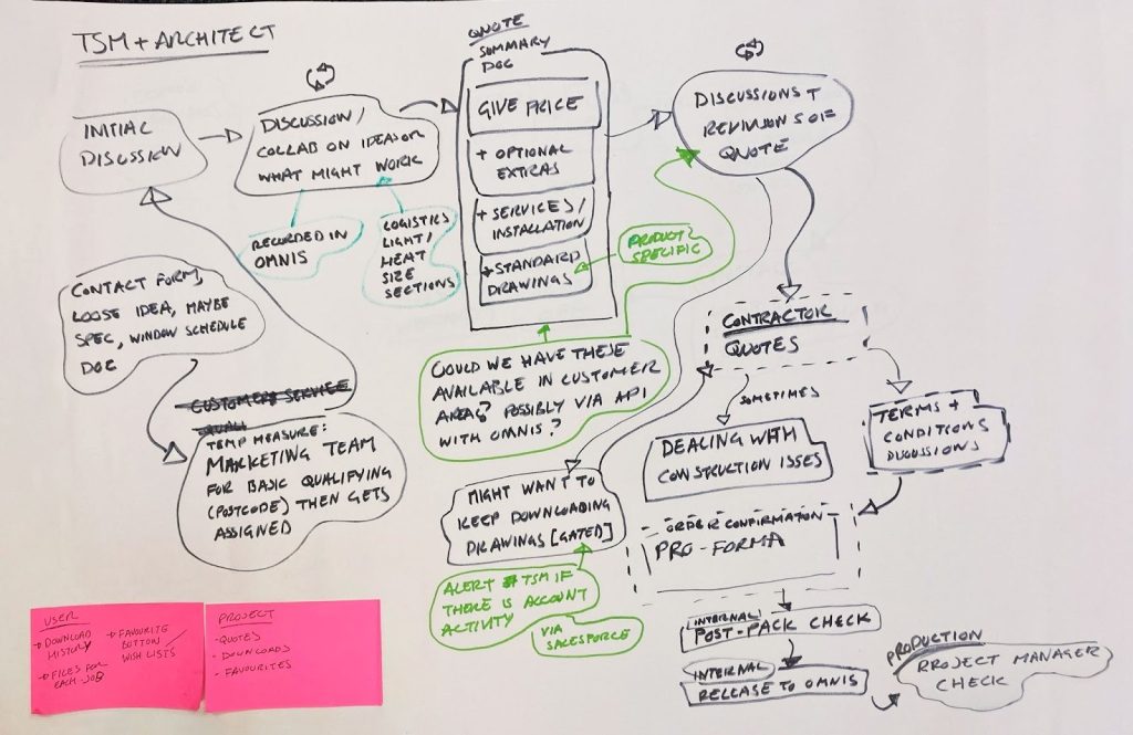One outcome of these workshops was the identification of Glazing Vision’s Technical Sales Managers (TSMs) as a customer’s first point of contact, playing a crucial role in guiding them through complex decisions. The TSMs were therefore made a prominent feature of the site, placing their profiles and contact options at important points to humanise calls to action.